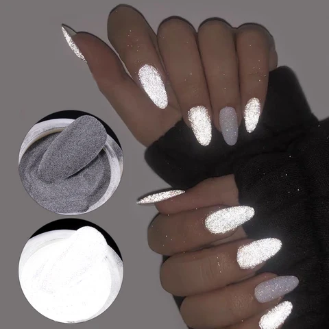 1Box Reflective Nail Glitter Powder Shiny Dust Glow In The Dark For Bar Disco Sparkling Pigment Fluorescent Nail Art Decorations