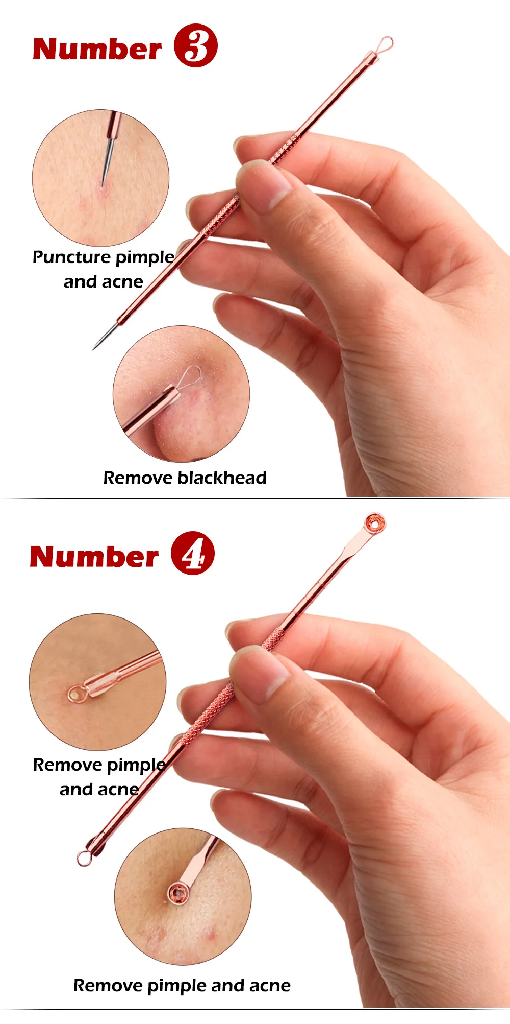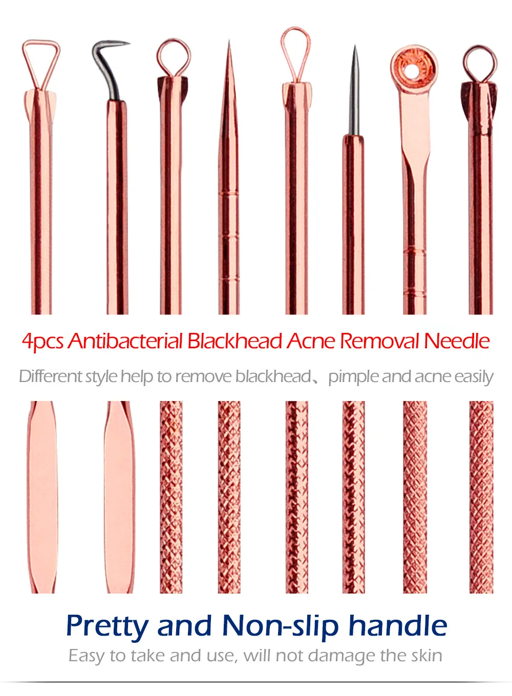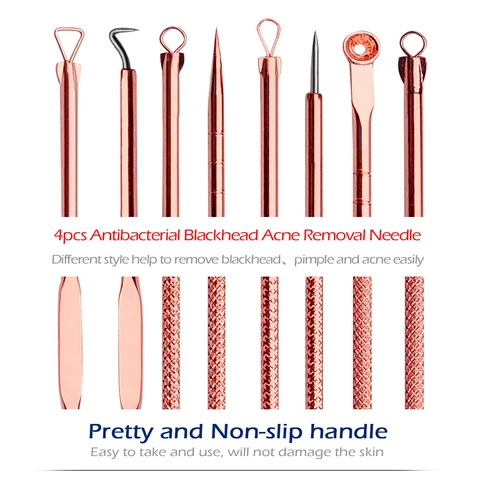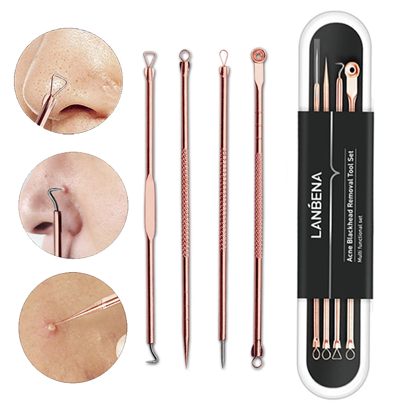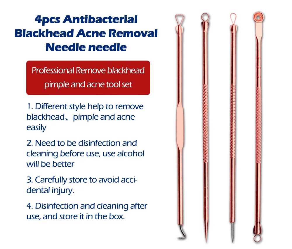 4pcs/set Rose Gold Acne Blackhead Comedone Pimple Belmish Remover Needles Face Beauty Skin Care Tools Black Head Removal Tool