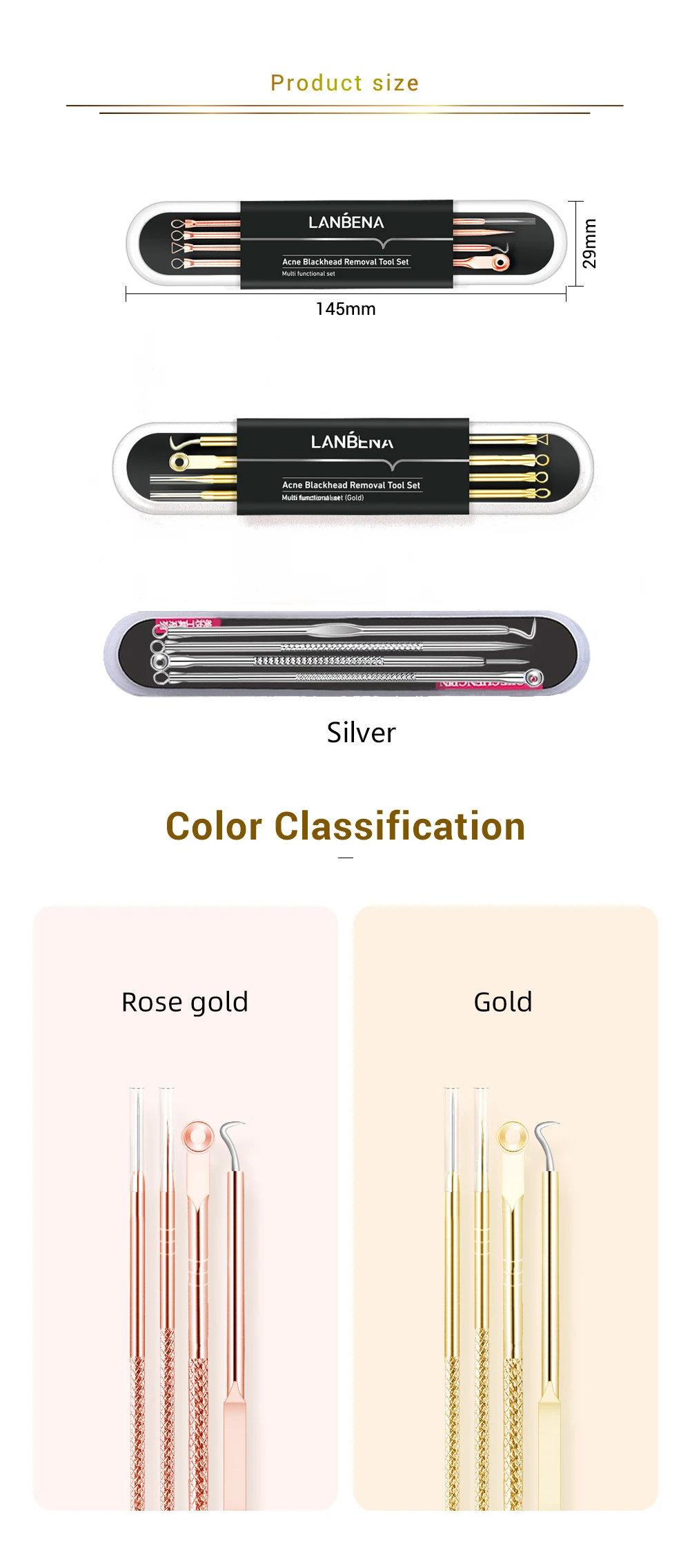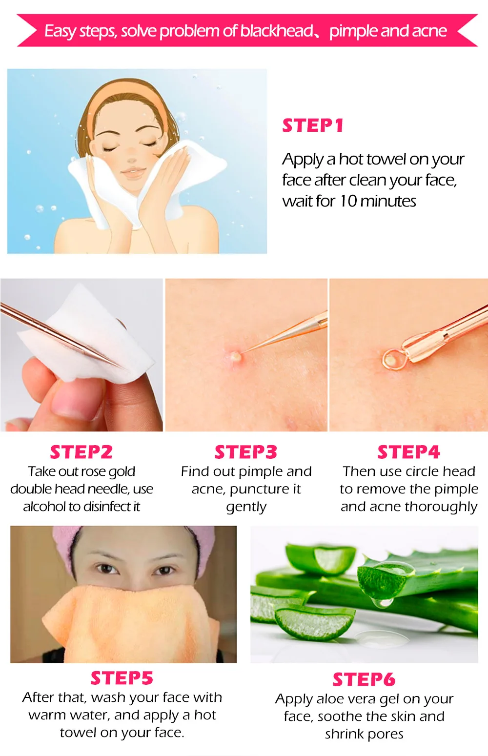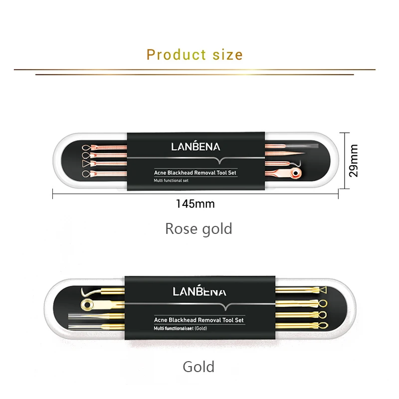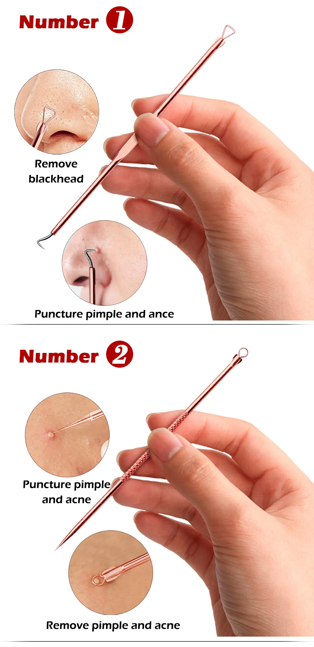 4pcs/set Rose Gold Acne Blackhead Comedone Pimple Belmish Remover Needles Face Beauty Skin Care Tools Black Head Removal Tool