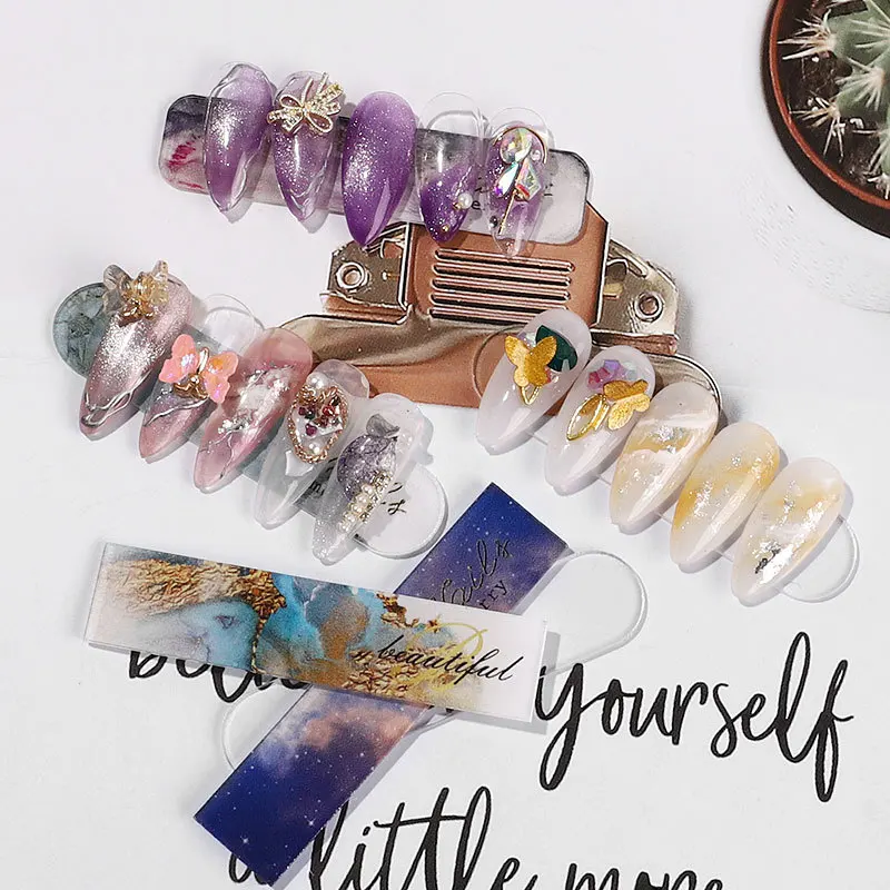 10Pcs Nail Art Acrylic Display Stand Japanese Style False Nail Tips Long Strip Manicure Showing Shelf Nails Accessories Tools