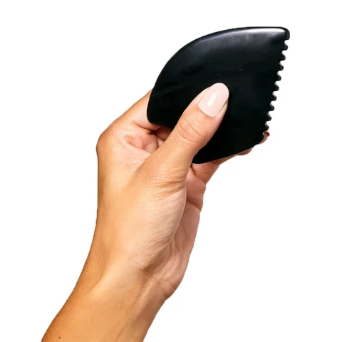 The Empress Stone is our patented facial gua sha tool designed to sculpt and reinvigorate the skin. Unlike other gua sha stones typically made from quartz, the Empress is composed of Bian stone, an amalgamate of 40+ minerals known for their healing properties. Each edge of the tool is intentionally architected to enhance the practice of facial gua sha, which is a traditional Chinese beauty practice.