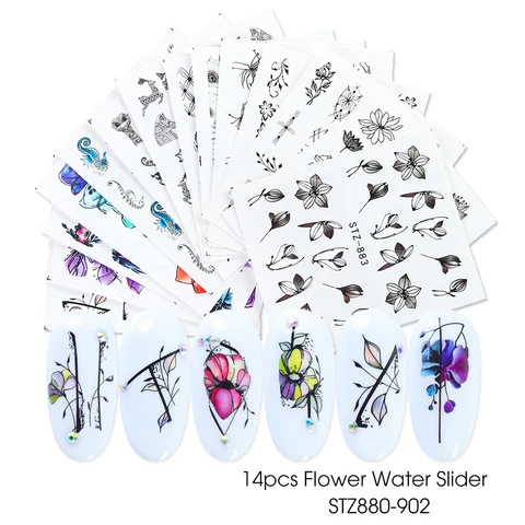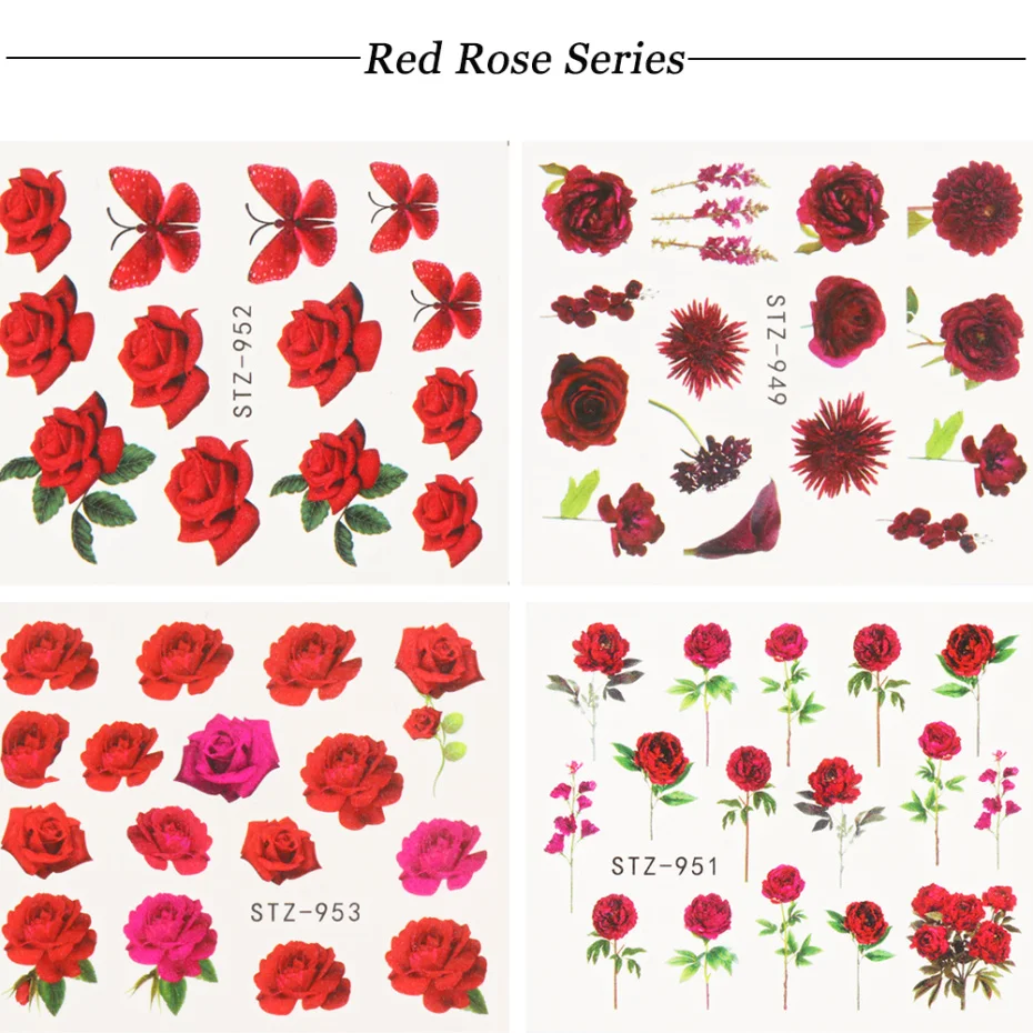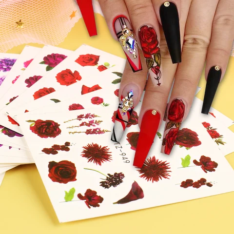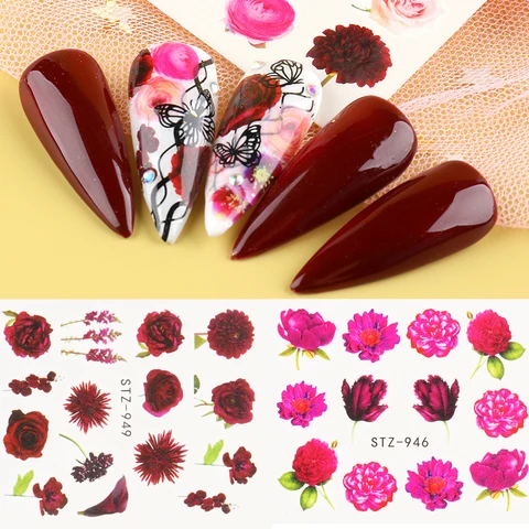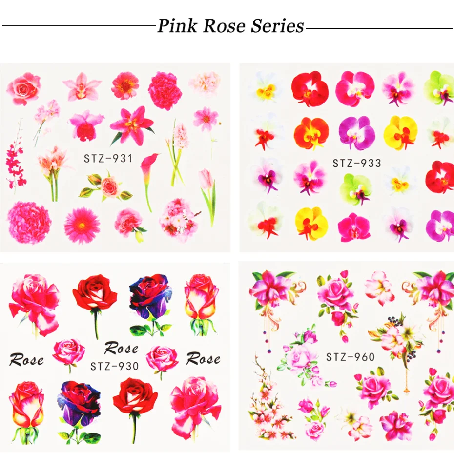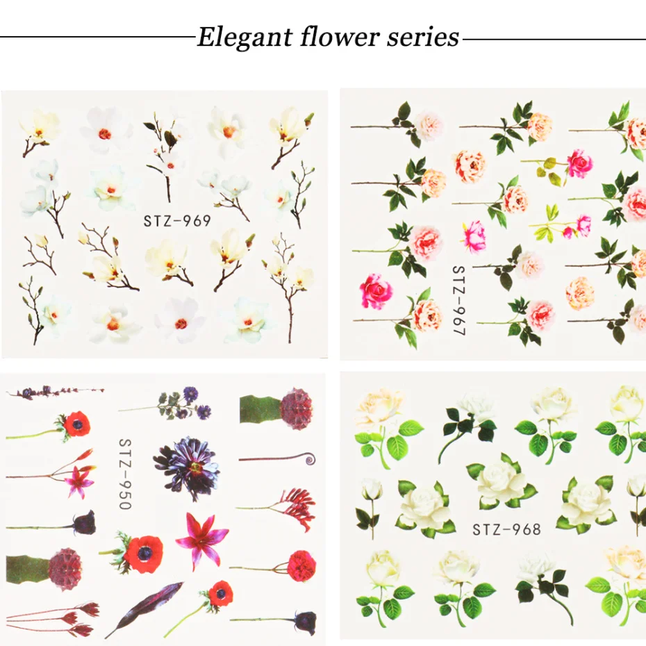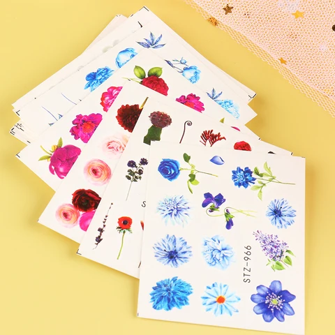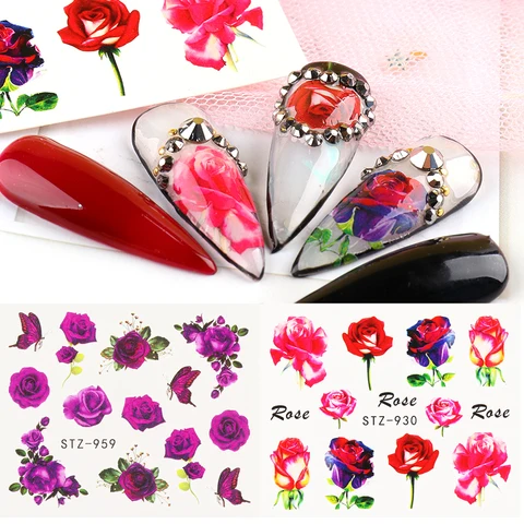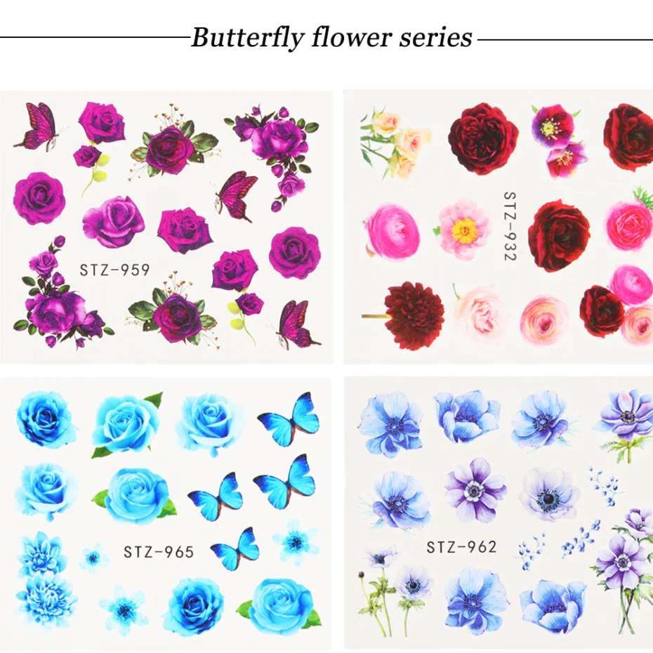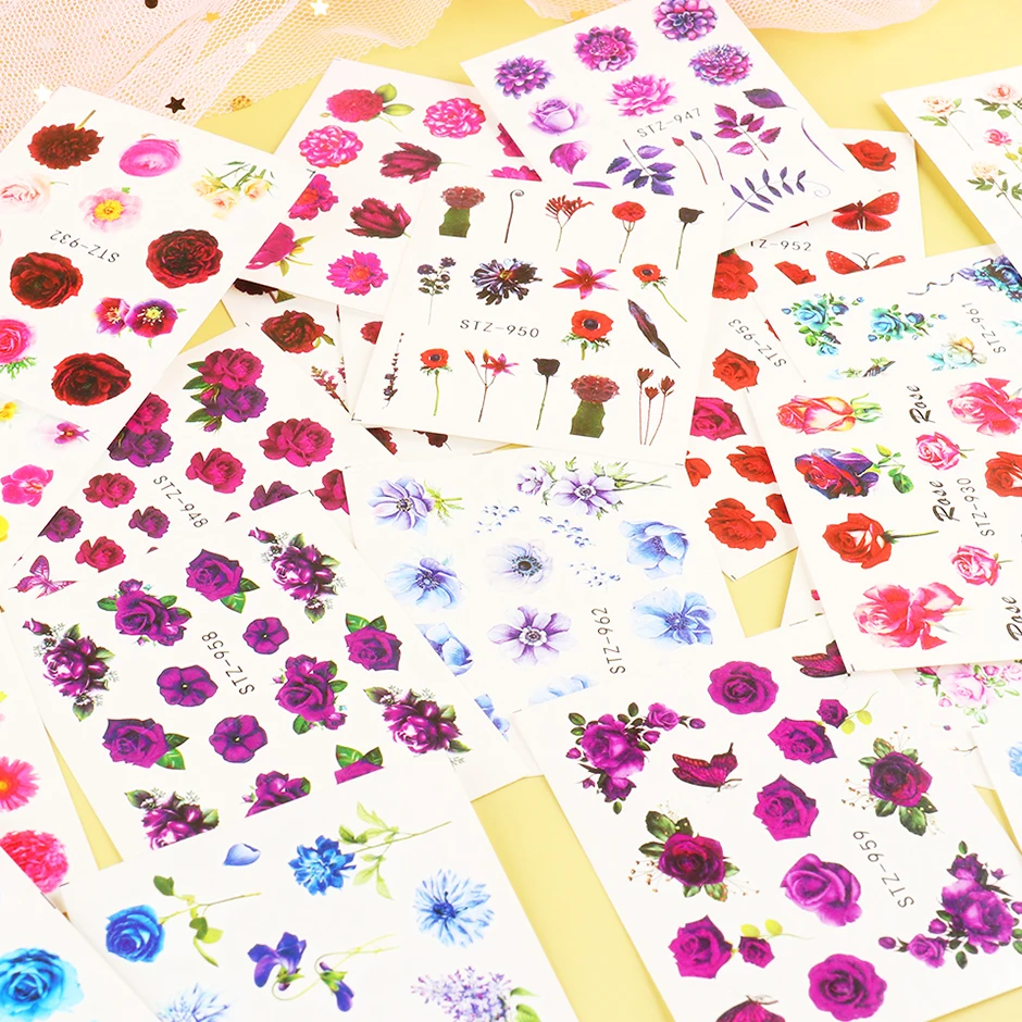 Mixed Stickers for Nails Rose Flowers Butterfly Water Decals Nail Art Decoration Slider Polish Foil Paper Tips CHSTZ930-969