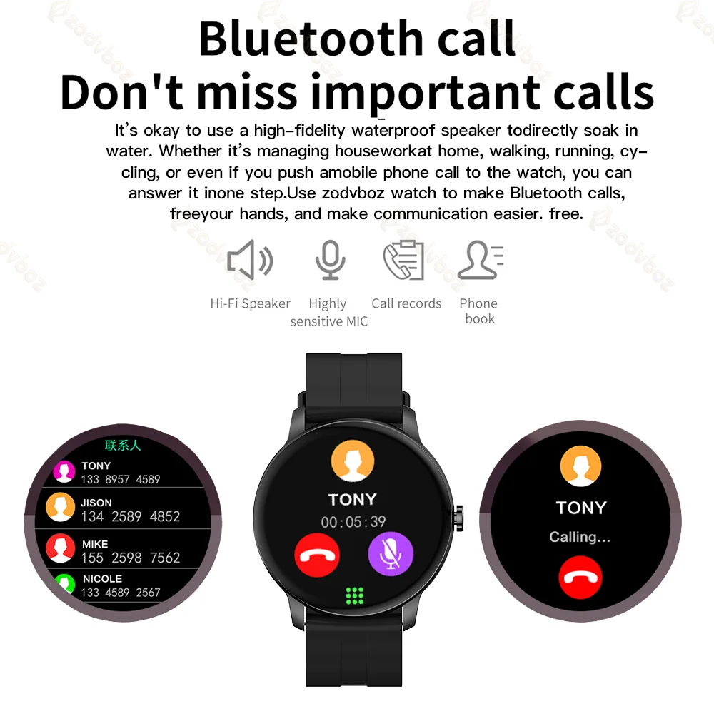 Basic functions:Answer calls, make calls, heart rate/blood oxygen/blood pressure monitoring, calculator, time/calendar display, step counting, distance, calories, weather, Bluetooth music playback, sleep monitoring, call reminder, SMS reminder, social APP message Reminders, alarm clock reminders, sedentary reminders, turn the wrist to brighten the screen, multi-sports modes, find bracelets, find mobile phones, remotely take pictures, multi-dial switching, custom background, brightness adjustment, etc.
