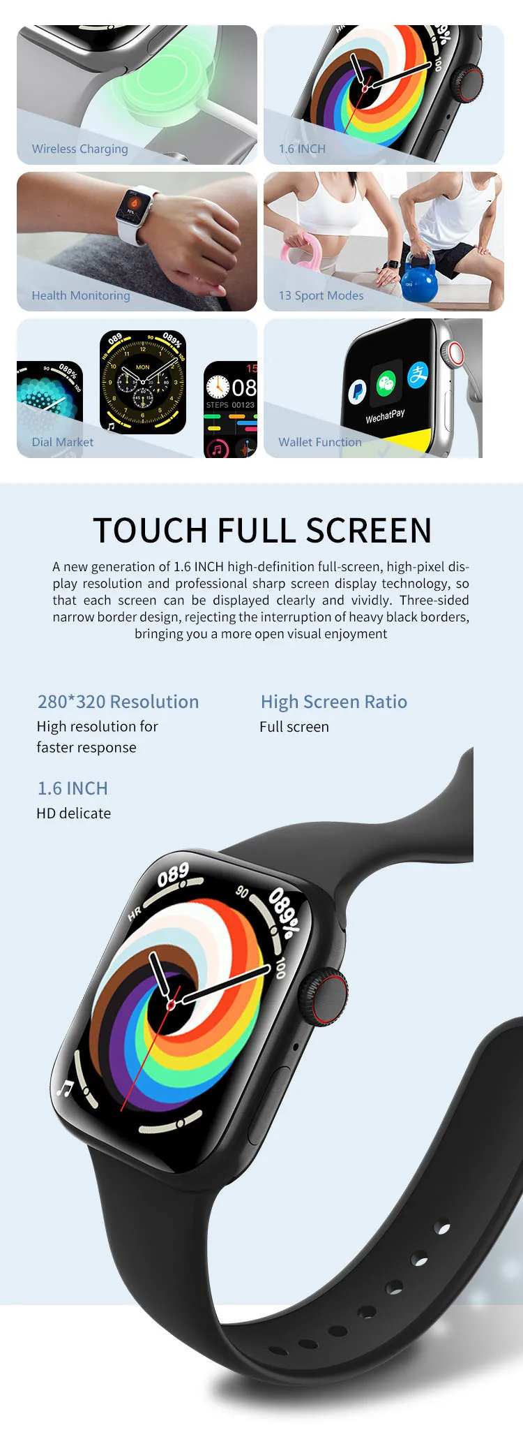 When it comes to performance, HW67 mini Smartwatch adopts the built-in Hs6621 chip for faster response speed and faster data processing, and it is powered by 64MB ROM so that the watch can be equipped with more watch faces. For your health, this device has an HRS3300 Heart Rate Sensor and G-sensor, so this wearable device manages your motion every moment and takes good care of you throughout the day.