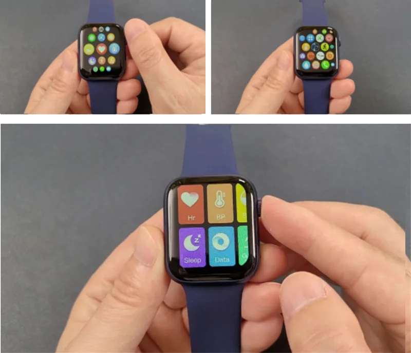 The menu has 3 different styles to suit your taste, one in the form of bubbles icons,another in the form of 6 square grid icons or dynamic lists, and you can switch between them with a double press on the side button.