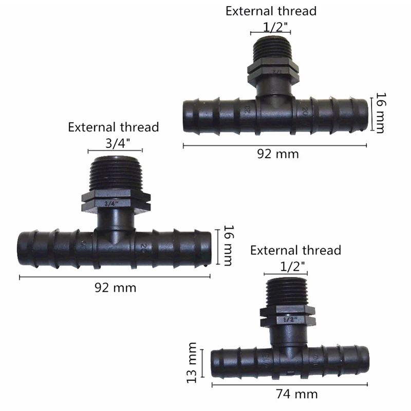 Plastic Hose Barbed Tee Connectors with Threaded Perfect for the irrigation of your flower, plants, lawn, agriculture, villas, industrial irrigation!