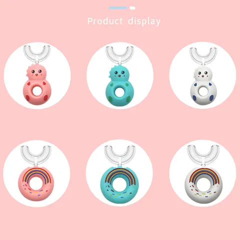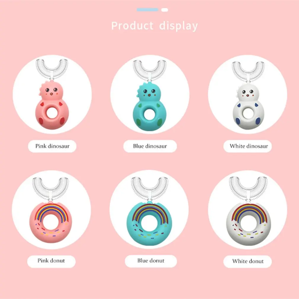 Children 360 Degree Doughnut Manual Toothbrush Kids Silicone U-shaped Tooth Brush Cartoon Gift For 2-6-12 Years Old