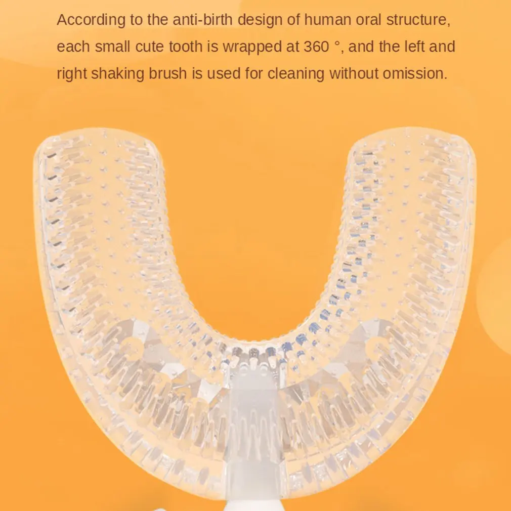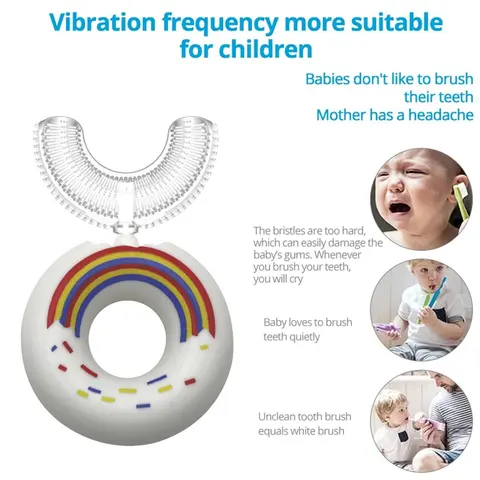 1. Suitable crowd: the U-shaped toothbrush with proper design for the kid's tooth structure, especially for kids' growing teeth and sensitive tooth; The cute shape is attractive to kids, reducing their resistance to brushing teeth and growing good habit from their childhood.