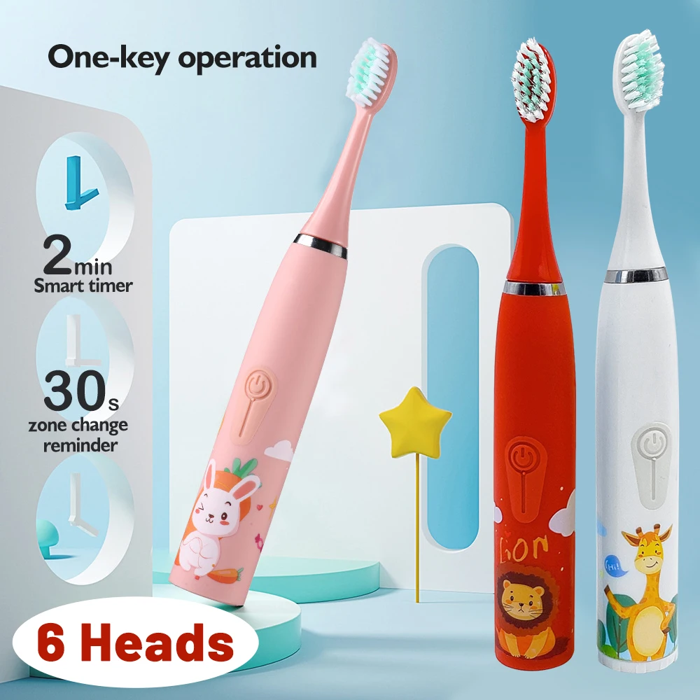 • Children Electric Toothbrush Cartoon Pattern Kids with Replace The Toothbrush Head Ultrasonic Electric Toothbrush