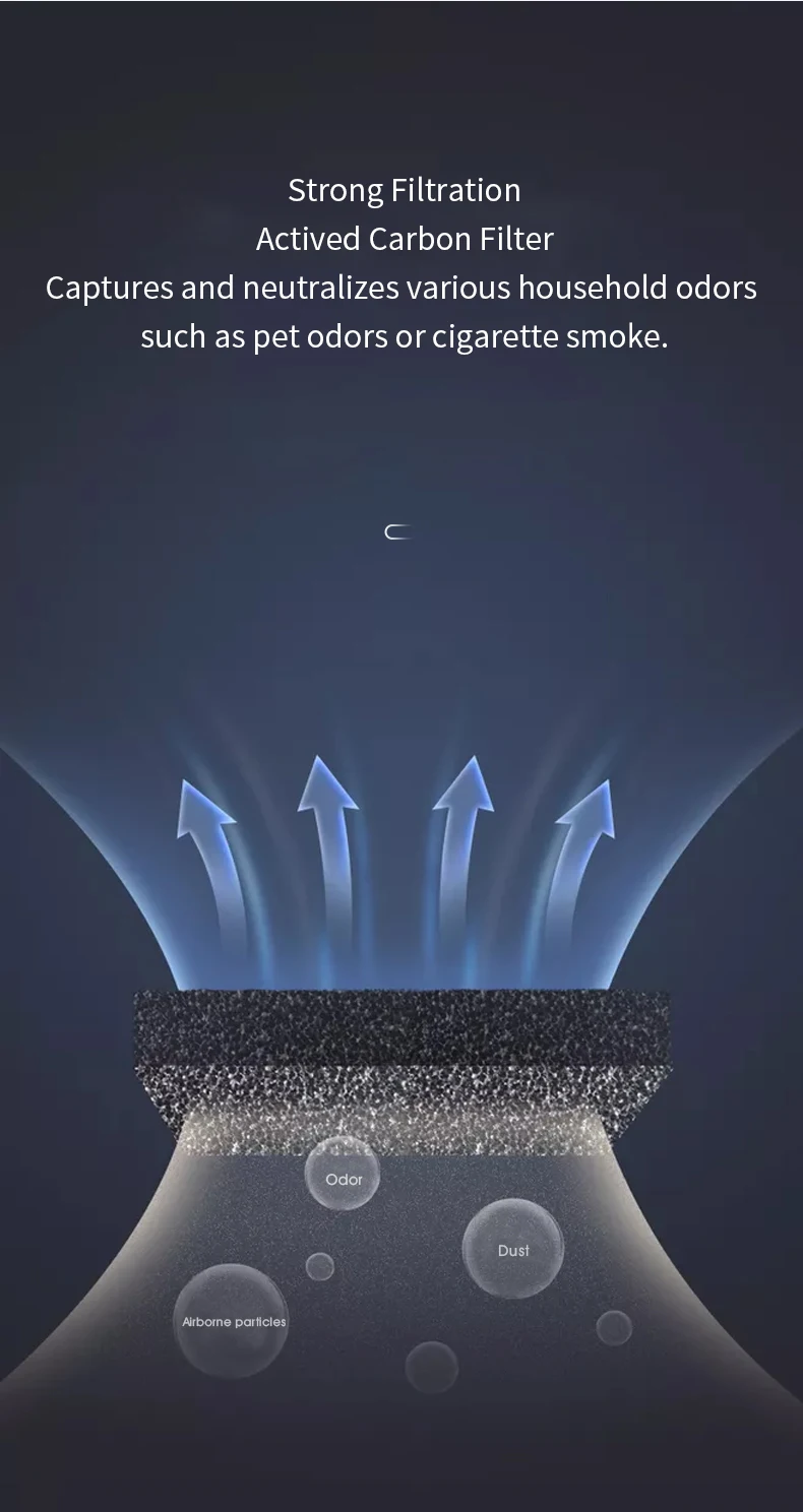 HEPA Air Purifier for Home Filters 99.30% of dust, pollen, cigarette smoke, odours, mould spores, and pet dander. Filters particles as small as 0.3 microns and larger, and filters air pollution of PM 2.5 (pollution rate) to help improve overall health.