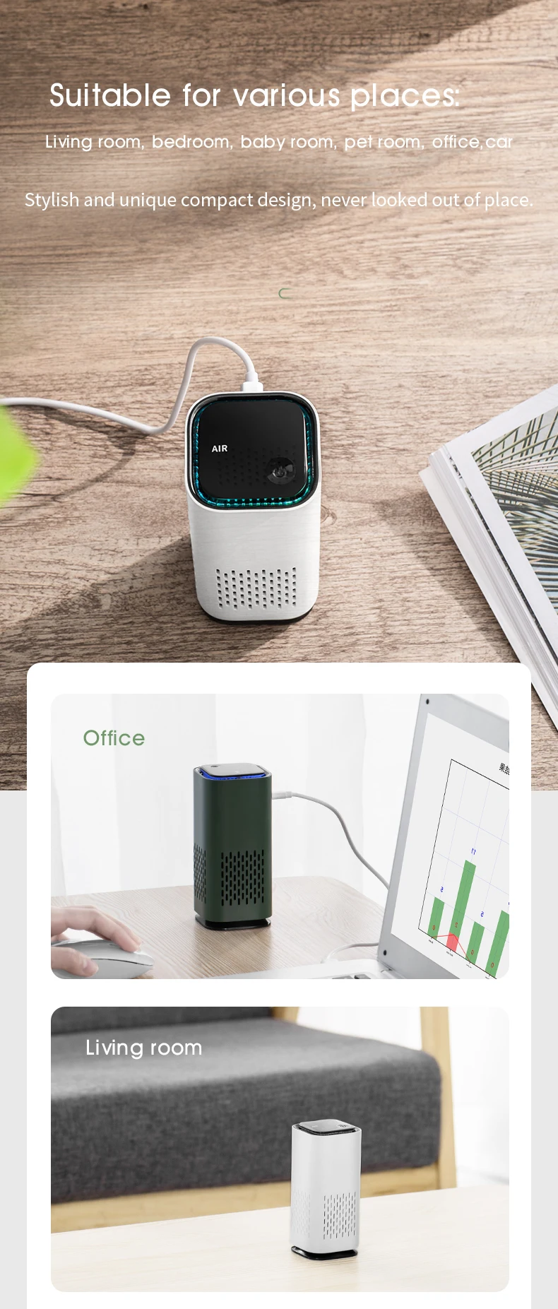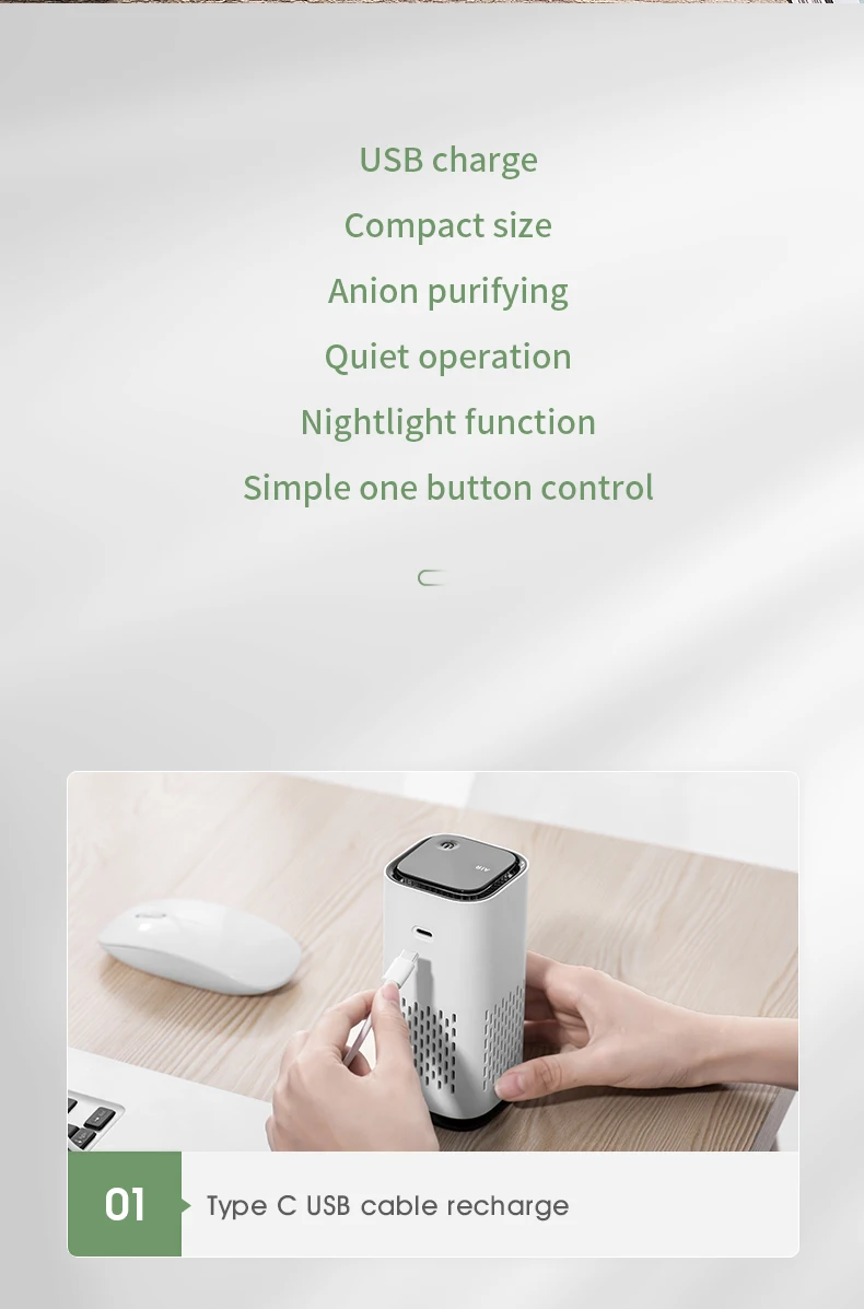 Air Ionizer Purifier Negative ions bring high efficiency air filtration, it also is good for emotion lifting, no ozone.