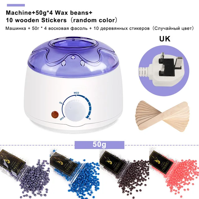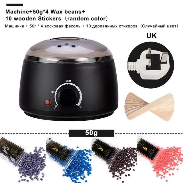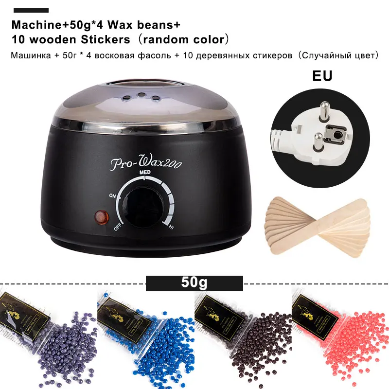 electric Mini Wax-melt Heater Machine 4 Bags Wax Bean 10 Wood Stickers Hair Removal Machine Waxing Kit Calentador de cera