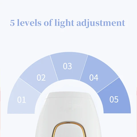 1. Five adjustable light intensity levels to widely fit different skin types, can be used to remove hairs of legs, arms, armpits, bikini area, chest, back, chin and so on.
