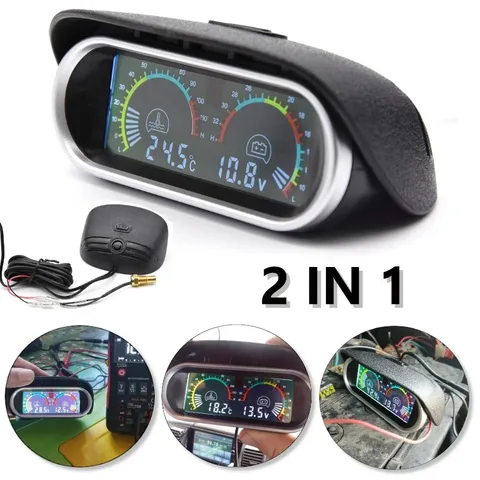 2 in 1 12v/24v LCD Car Digital Horizontal gauge Water Temp Gauge Meter Voltmeter Voltage Gauges with Temperature Sensor